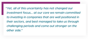 Yet, all of this uncertainty has not changed our investment focus. Yes, on the margin we have repositioned modestly to take into account volatile stock price movements and evolving views of both the conflict and our AI-driven future. But at our core we remain committed to investing in companies that are well positioned in their sectors, and best managed to take us through challenging periods and come out stronger on the other side.